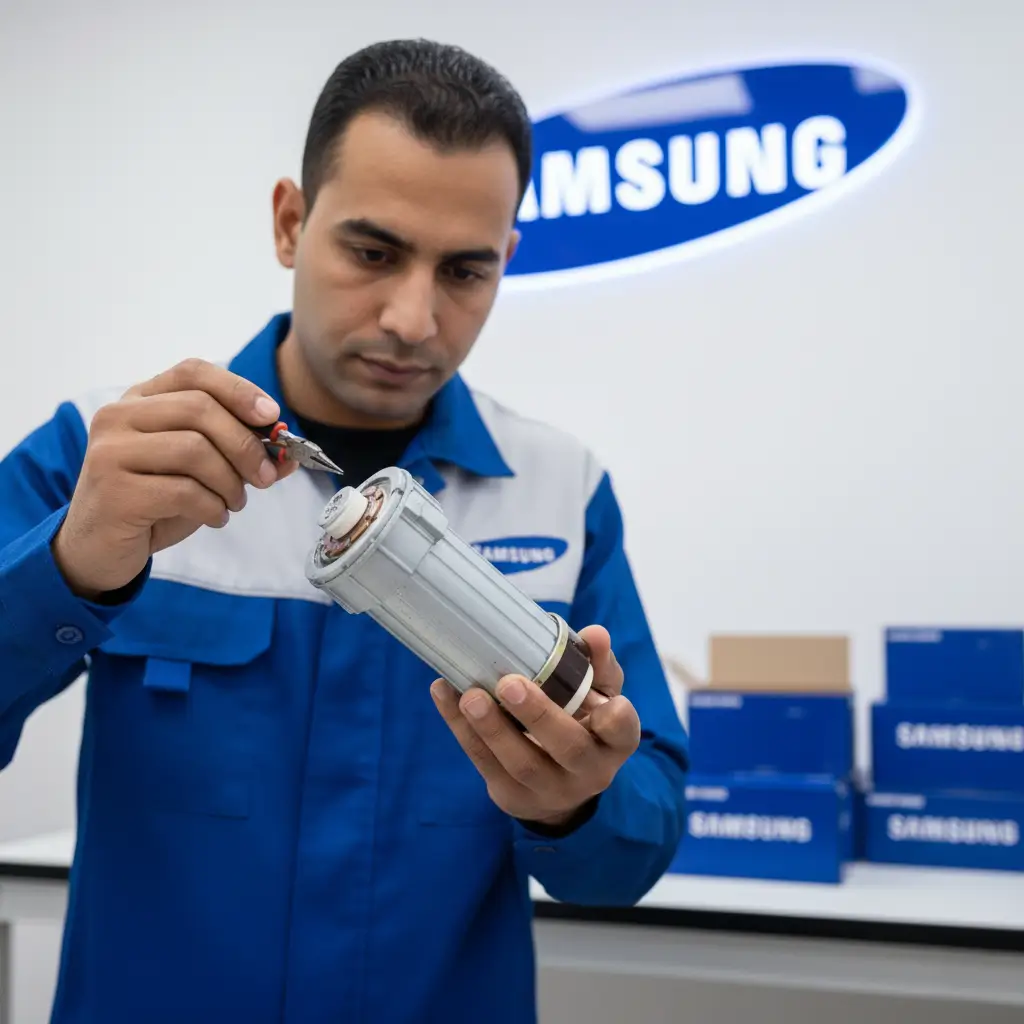 بل نبدأ بفحص شامل للمكونات الحيوية مثل الموتور الرقمي (Inverter Motor)، وطلمبة التصريف، ولوحة التحكم الإلكترونية (PCB)، للتأكد من خلو الجهاز من أي مشاكل مستقبلية. تتم عملية إصلاح غسالات سامسونج لدينا بشفافية واحترافية تامة في منزلك، مع استخدام قطع الغيار الأصلية فقط لضمان عمل جهازك بكفاءة وسلاسة لسنوات طويلة. ولأننا نثق في مهارتنا، نقدم ضماناً لمدة عام على صيانة غسالات سامسونج وقطع الغيار المستبدلة، مما يمنحك راحة البال المطلقة.