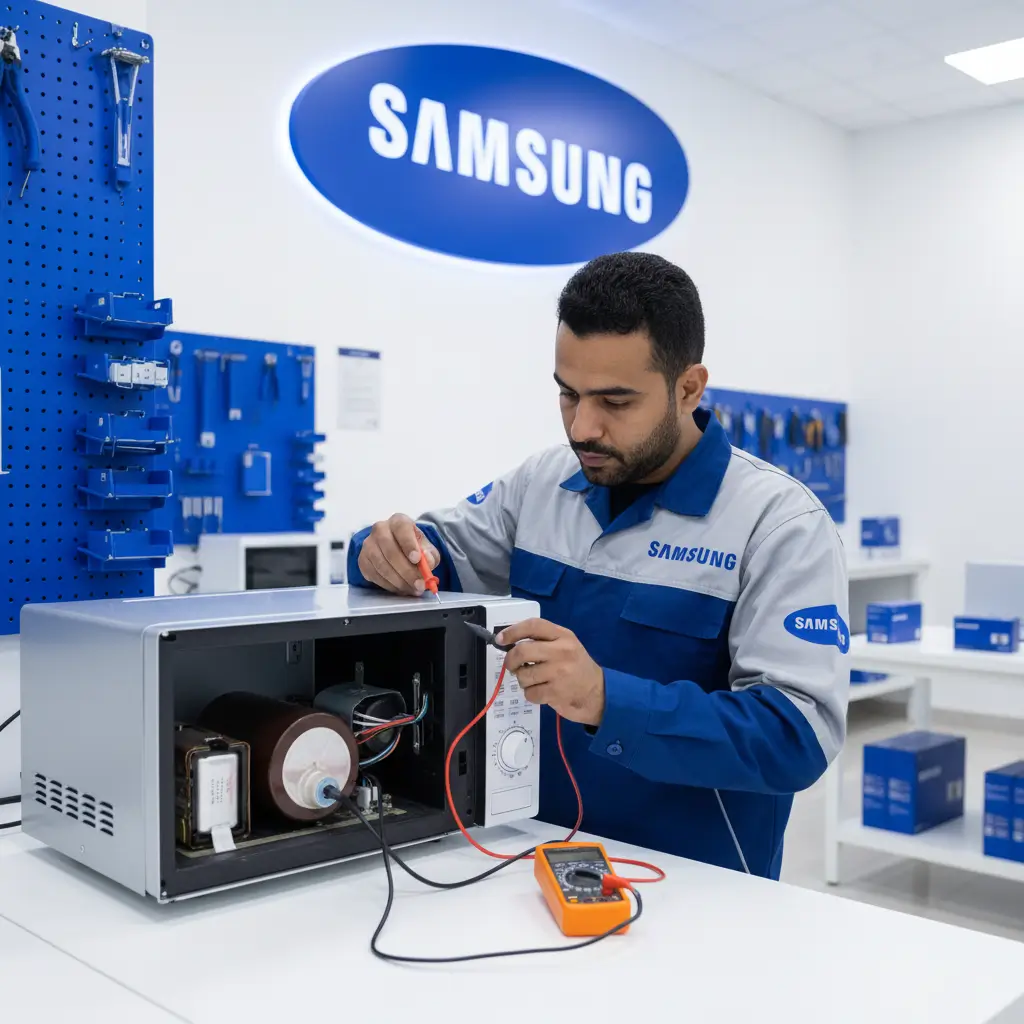 - الكفاءة الفنية: فريقنا مُدَرَّبٌ على أحدث موديلات سامسونج، سواء الميكروويف المنفرد (Solo) أو المزود بالشواية (Grill) أو الكونفكشن (Convection).